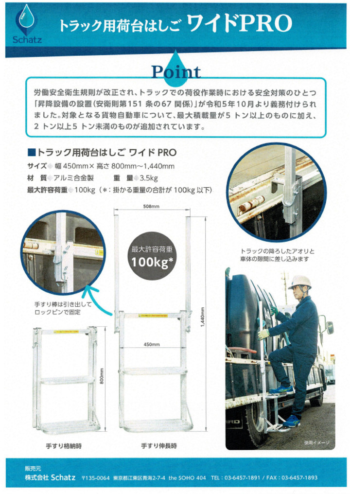 ※労働安全衛生規則が改正され、トラックでの荷役作業時における安全対策のひとつ「昇降設備(安衛則第151条の67関係)」が令和5年10月より義務付けられました。