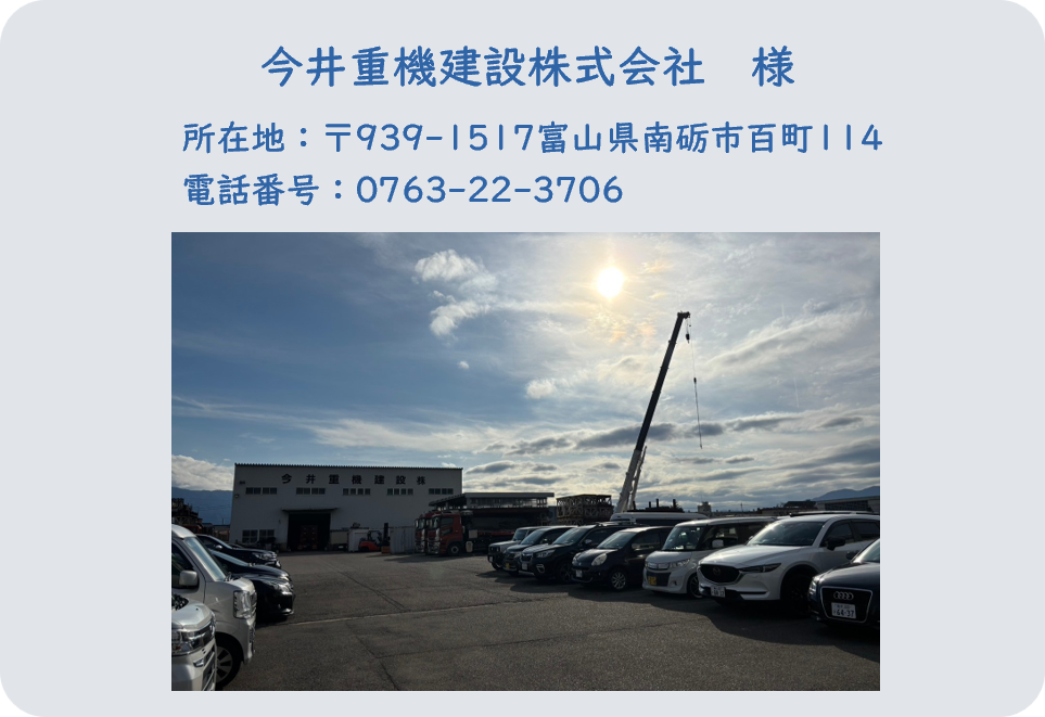 富山県南砺市に本社を構え、運送業・建設業を営まれている「今井重機建設株式会社」様。